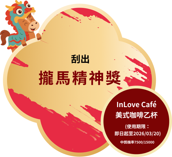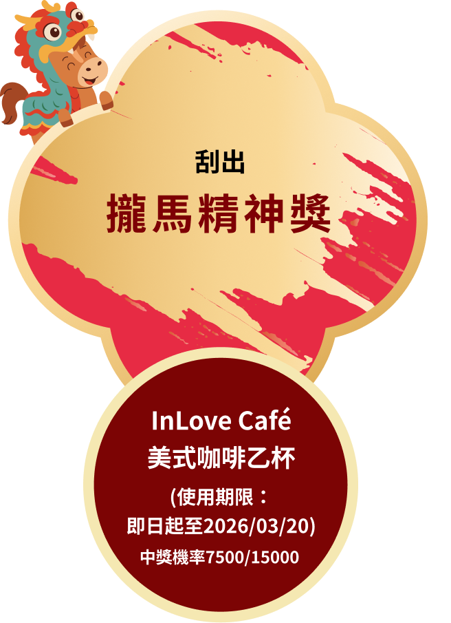 *玩法一「攏馬精神獎」(InLove Café 美式咖啡一杯)兌換品項為中杯